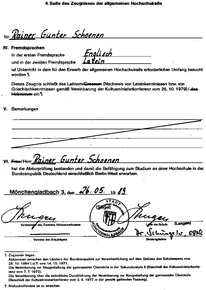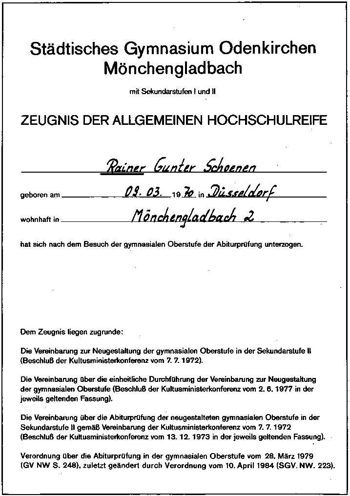 Dr. Rainer Schoenen Roermonder Str. 42 52072 Aachen Germany